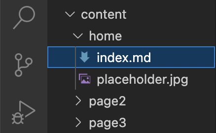 For example, here, my homepage (index.md) is put into content/home folder.