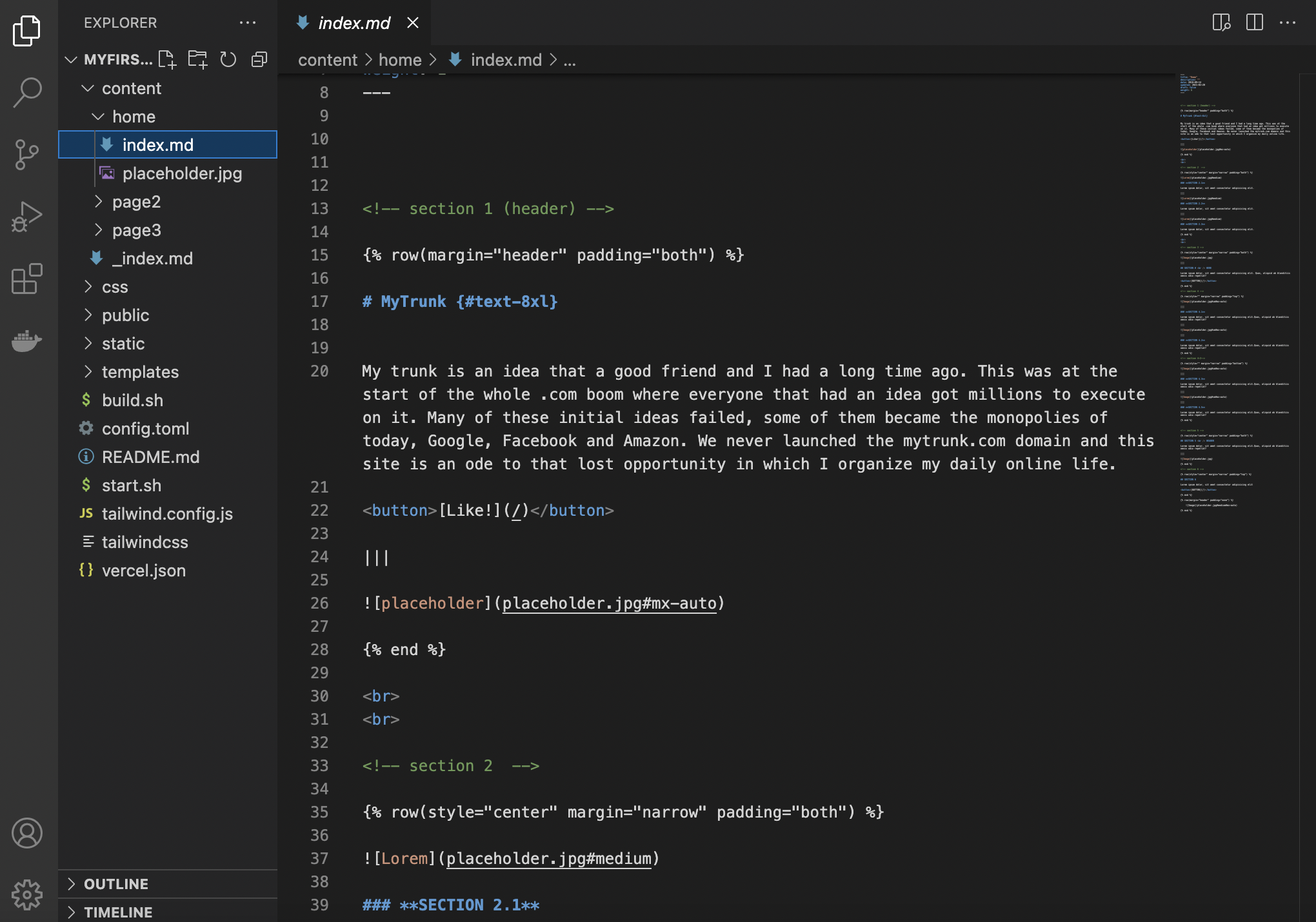 All editable content of your website would be found under ‘content’ folder. Each page of your website is a markdown (.md) file.